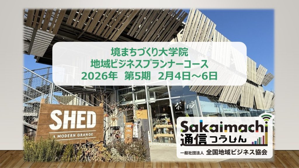 あけましておめでとうございます。旧年中は大変お世話になりまして、誠にありがとうございました。本年は2026年6月より「境まちづくり大学院・地域ビジネスプランナーコース」第6期、第7期を開講いたします。また、新たな試みとして「稼ぐ地域公社研究会」… -